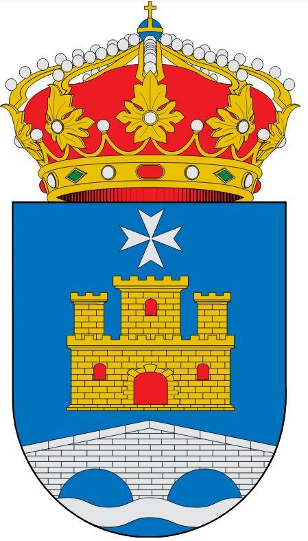 El escudo de Castejón del Puente es un escudo cuadrilongo de base redondeada. En campo de azur, castillo de oro, mazonado de sable y aclarado de gules, en jefe una Cruz de Malta; y en la punta, puente medieval, de plata, mazonado de sable, de dos arcadas sobre dos ondas de plata y azur. Al timbre, Corona del Escudo de España.